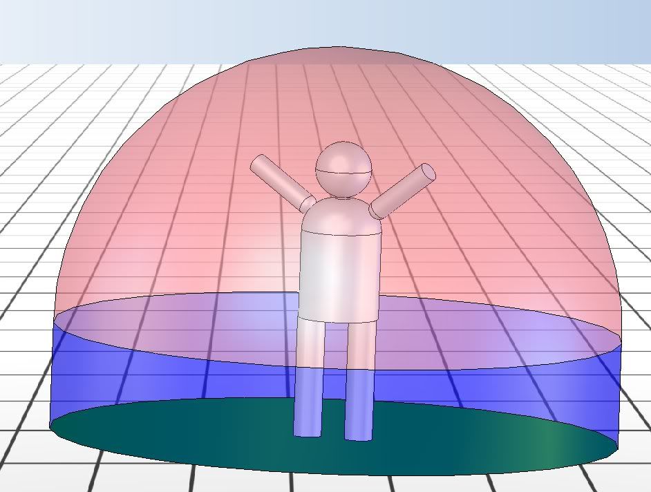 Catching increases the radius of "The Bubble"(Red), and Jumping increases "The Height" (Blue) of the "Possible Catching Area". Jumping also is used as a variable, along with agility, and speed, to determine if you can reach the furthest points of the "PCA". The better your vision the earlier you can react in time for the previous skills to join together for you to catch the ball.