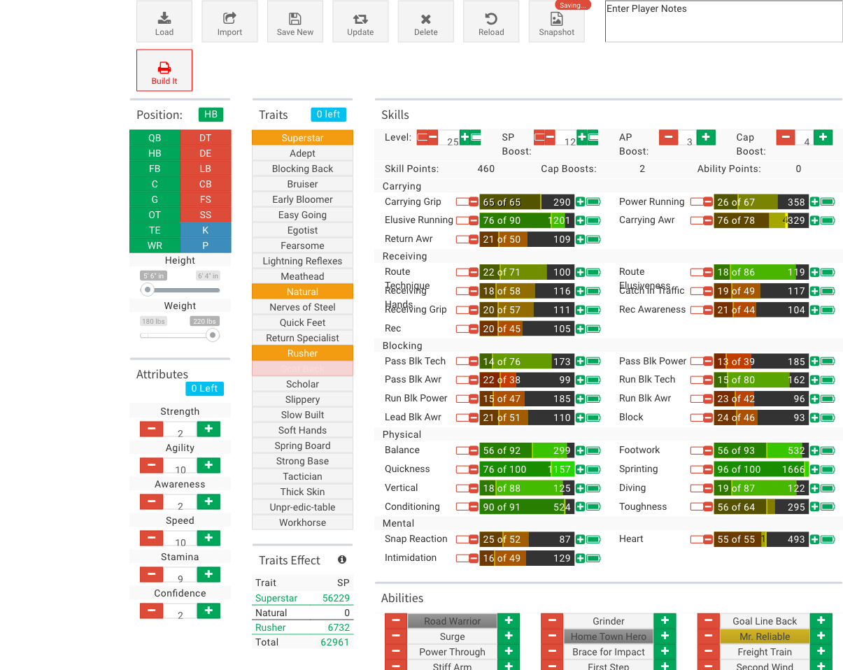 He's not bad, I could also respec him for purely elusive running like so: